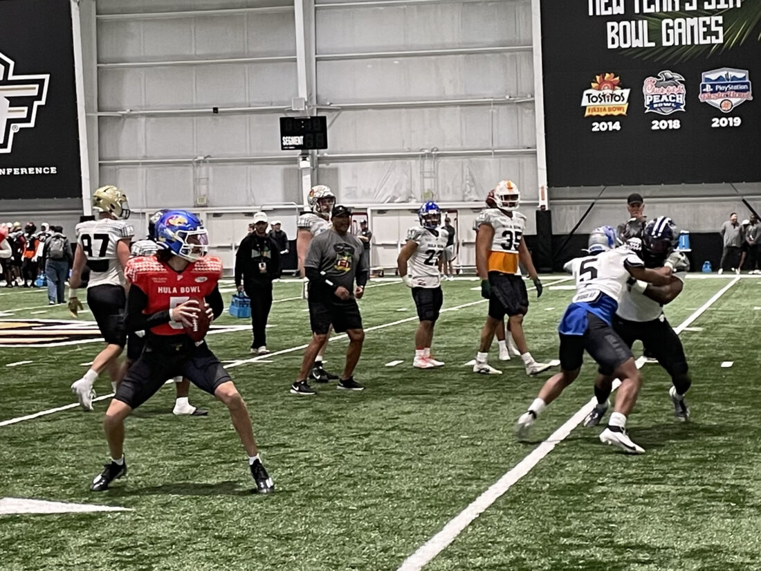 The Hula Bowl’s roster, shared with scouts at practices, has Bean — who spent his KU tenure widely considered the fastest player on the team, a rarity for a quarterback — listed as an athlete. He said Wednesday he had been told he might get some run at receiver but had only received reps at quarterback up until that point. (Practices began Tuesday after athletes arrived in Orlando Monday; much of the rest of players’ time consists of interviews with scouts.)
