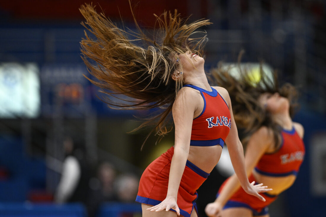 The Rock Chalk Dancers perform during a timeout Wednesday, Jan. 31, 2024, in Allen Fieldhouse.