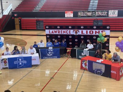 Lawrence’s main gym held tables for Kennedy Glasgow, Anabel Berger, Selah Simien and Tyler Dye as they made their college commitments official while surrounded by friends, teammates, coaches and family.