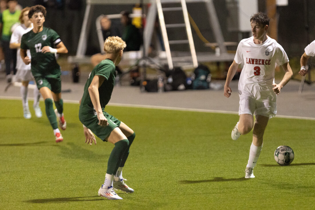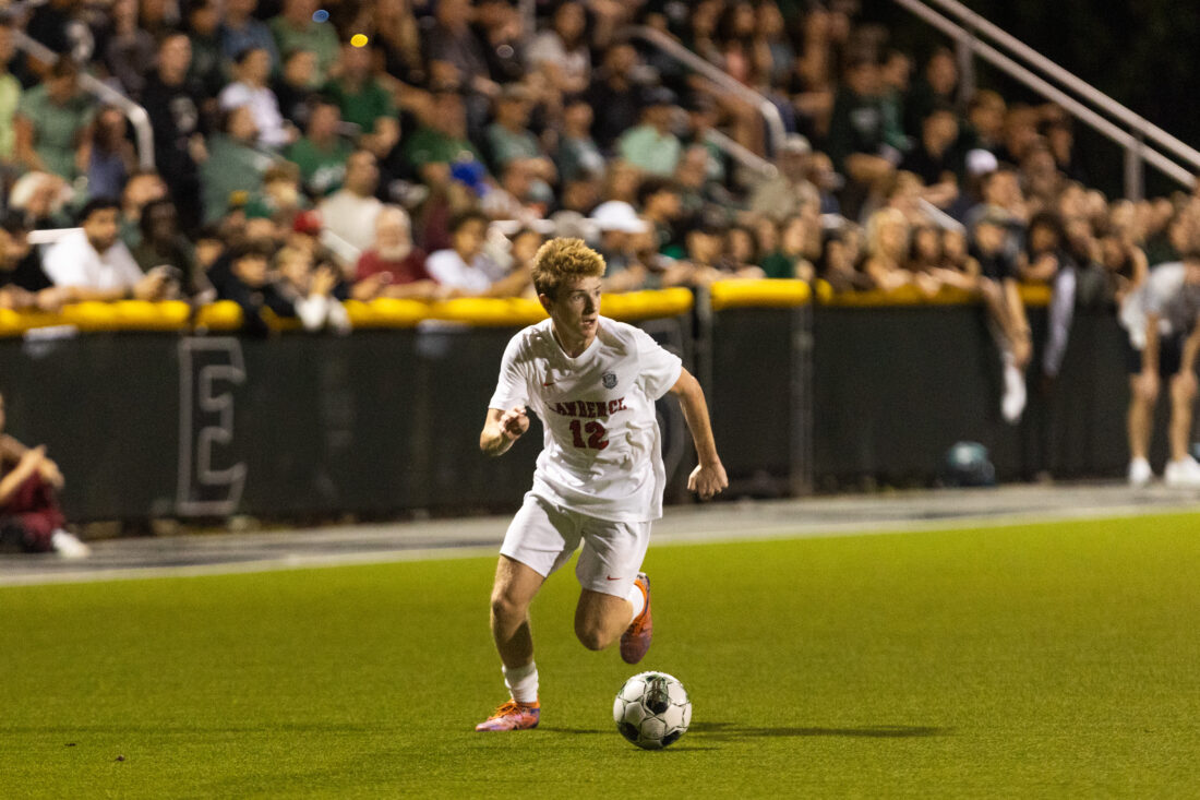 Lawrence senior Patrick Sandefur controls the ball after a pass against Free State on Thursday, Sept. 18, 2025, at Free State High School.