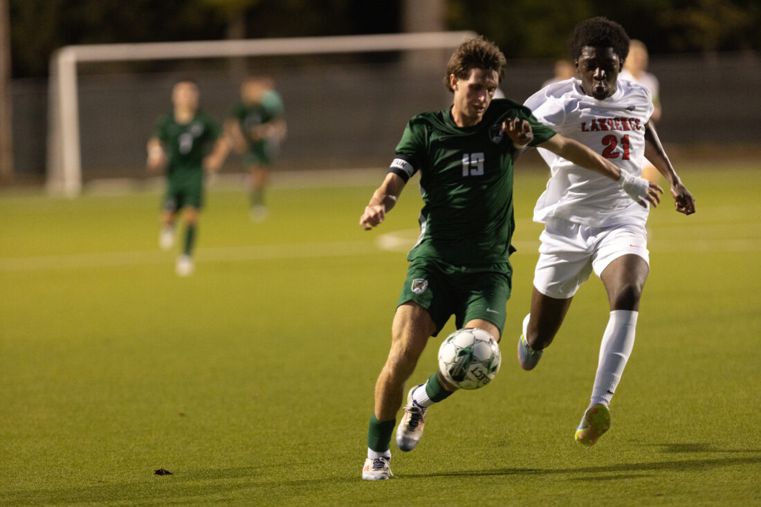 Lawrence junior Oscar Paden dribbles the ball down the field against Free State on Thursday, Sept. 18, 2025, at Free State High School.