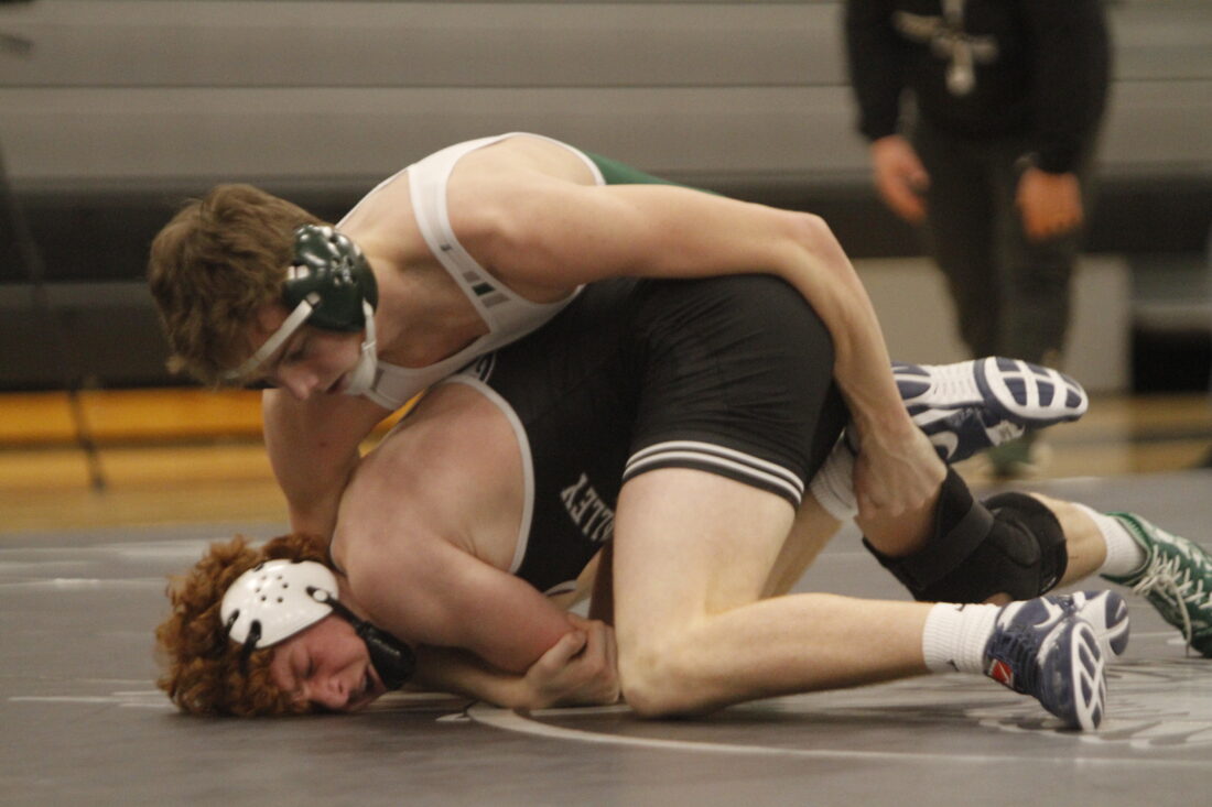 Mill Valley won the 138-pound bout with a decision win over Free State’s Tristan Moore. In the 144-pound match, Mill Valley’s Luke Whisler beat Free State’s Brogan Hagen by decision. The Jaguars got a technical fall win with William Gadwood beating Free State’s Hudson Andrew.