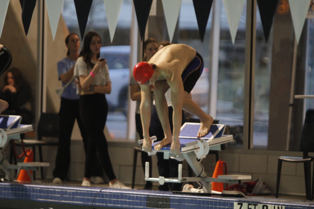 Oral was the lone Lawrence swimmer to compete in the final day of the meet, but he wasn’t the only Chesty Lion in the building. Teammates and peers cheered him on from the crowd and gave him some appreciated support.