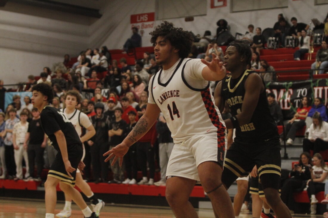 The Lawrence boys’ start was about as different as possible from the girls. Junior Kenyon Doleman, sophomore Simon Simien and freshman Axl Bland all hit 3s to give Lawrence a 17-6 lead early in the opening quarter. After LHS took a 20-8 lead, the Trojans ended with two 2-pointers to cut the Lawrence lead to eight at the start of the second quarter.
