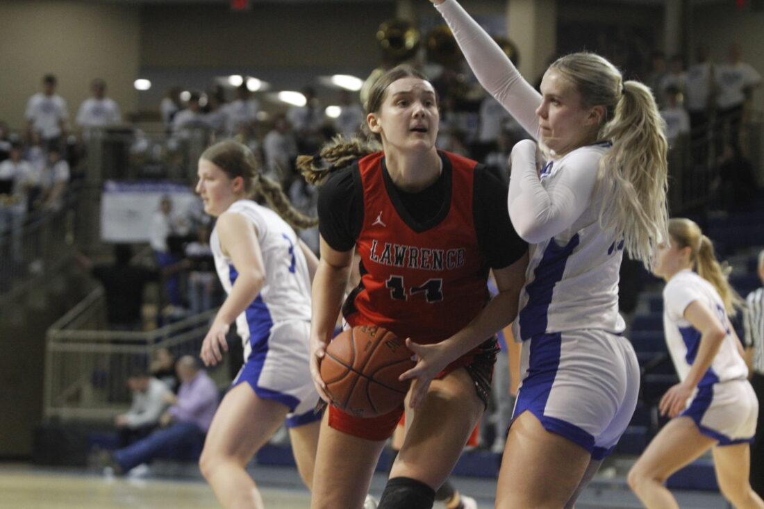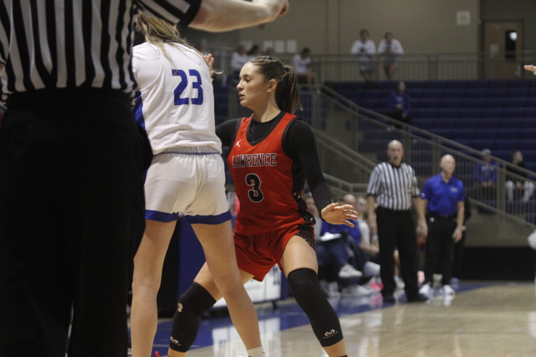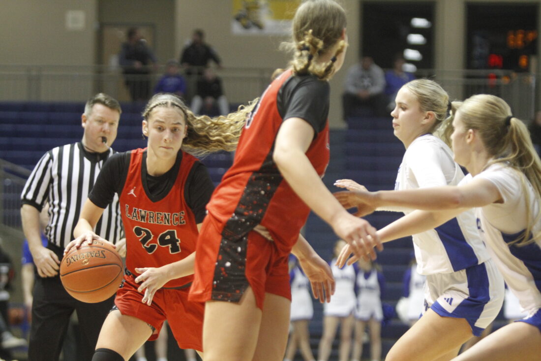 The first quarter was a slow start offensively for both teams. The Junior Blues held a 6-5 lead after the first eight minutes, with four of their six points coming from free throws. Lawrence freshman Marley Doleman scored three of Lawrence’s five points, with junior Cami Nauholz scoring the other two on a putback.
