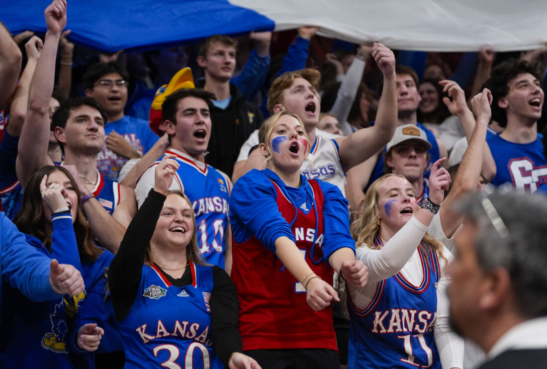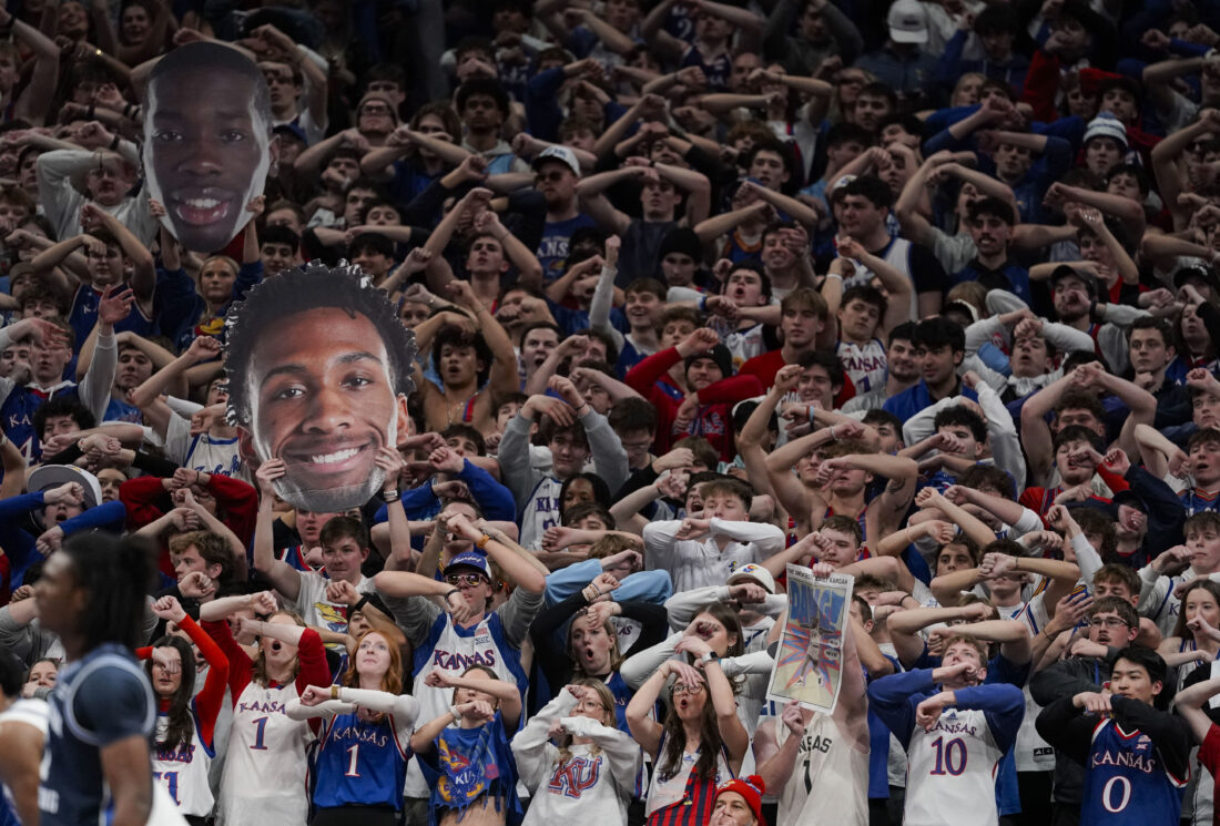 Cutouts of Kansas guard Melvin Council Jr. and Kansas guard Darryn Peterson float through the student section during the first half on Saturday, Jan. 31, 2026 at Allen Fieldhouse. Photo by Nick Krug