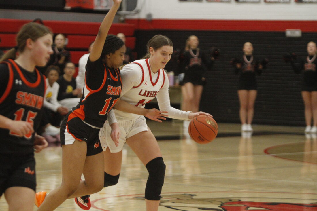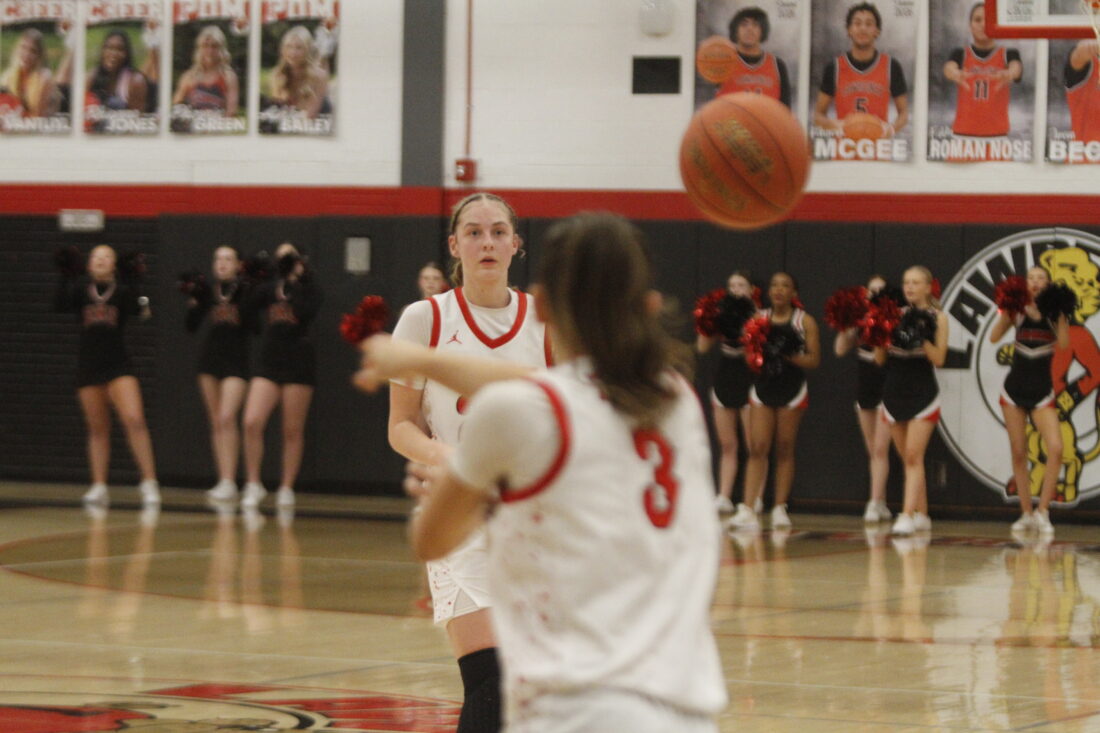 The game was a challenge for the Lions offensively. Lawrence likes to get the ball in the paint to junior Cami Nauholz, but the Cougars were packing the paint and making entry passes difficult. But that left open space along the 3-point line, which the Lions were able to take advantage of.