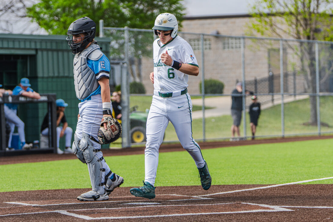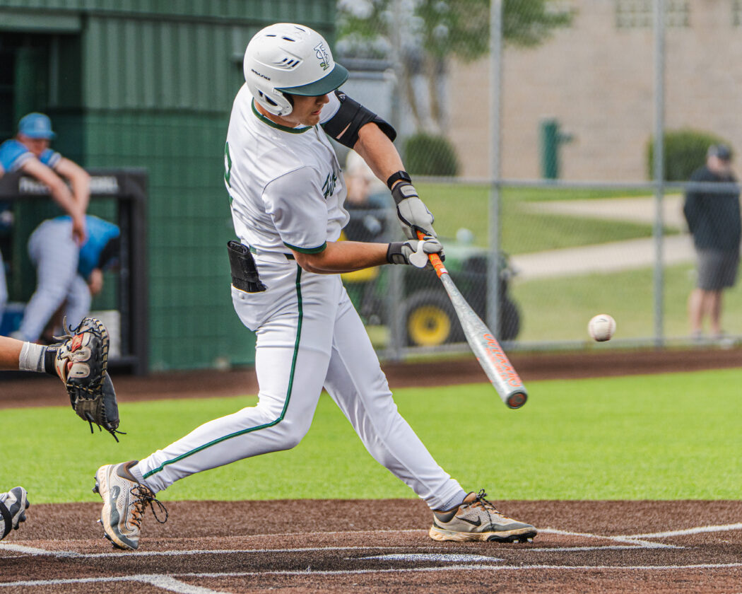 After a three-up, three-down inning for Shaw on the mound, junior Ferris Dinkel welcomed Shawnee Mission East relief pitcher Chase Kvapil to the game with a leadoff single in the bottom of the fifth. Shaw followed suit with another single, and Young walked to load the bases.