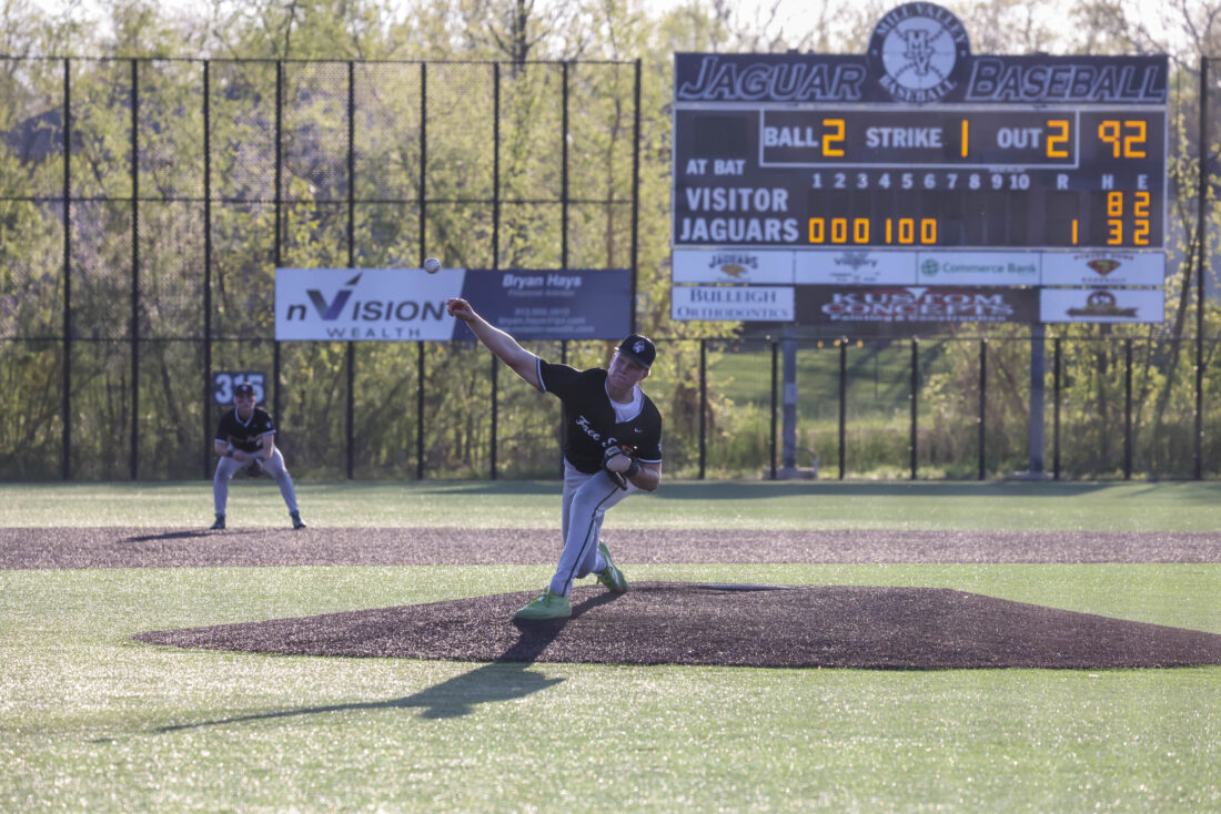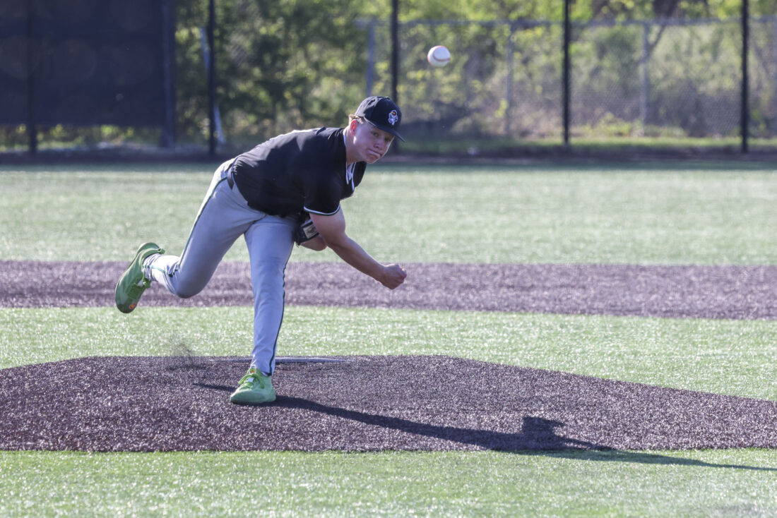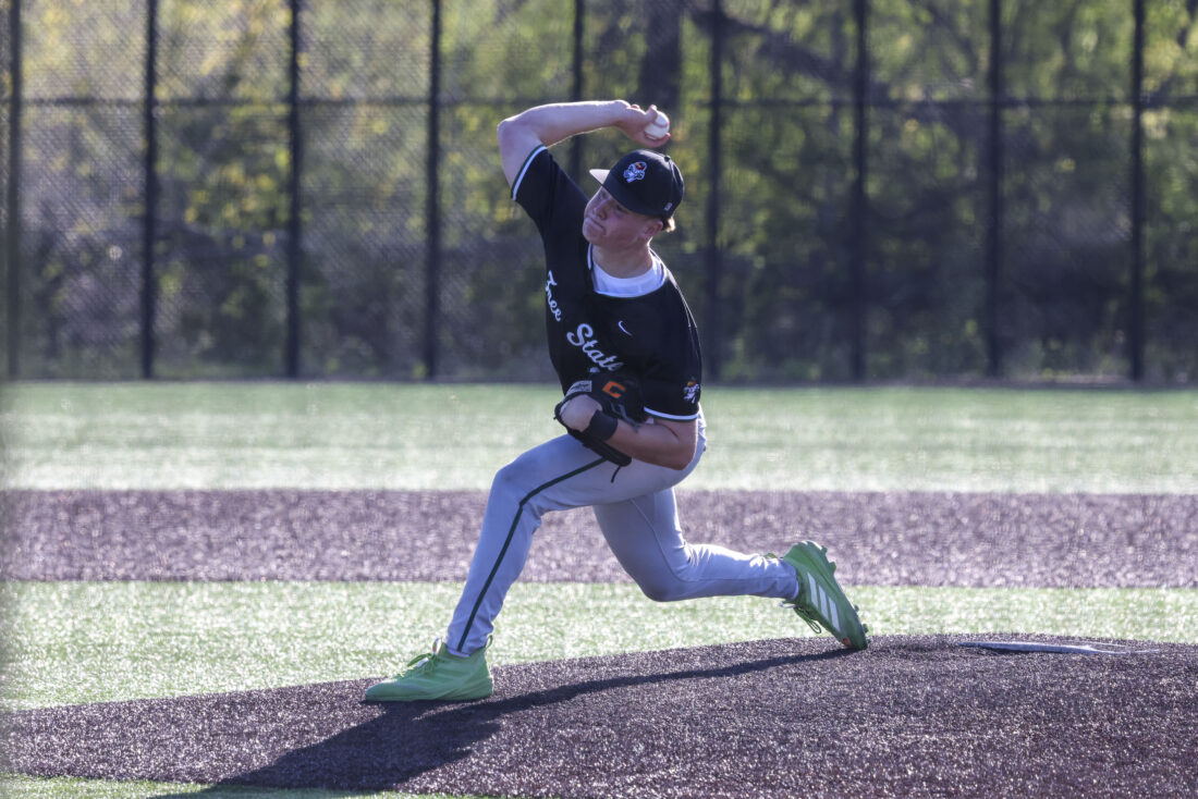 Free State pitcher Zane Shaw delivers a pitch in his complete game against Mill Valley on Thursday, April 16, 2026, at Mill Valley High School in Shawnee.