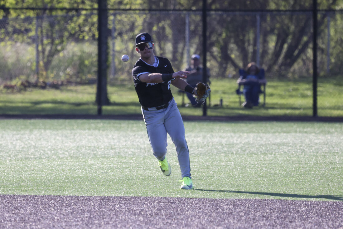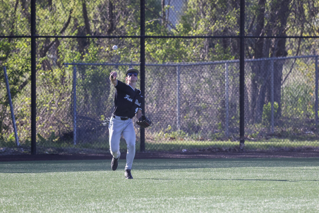 Free State center fielder Ryker Mahnke gets the ball in from the outfield during the Firebirds’ game against Mill Valley on Thursday, April 16, 2026, at Mill Valley High School in Shawnee.