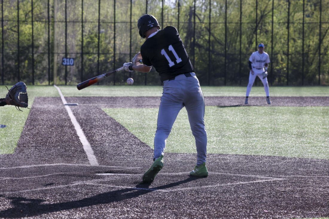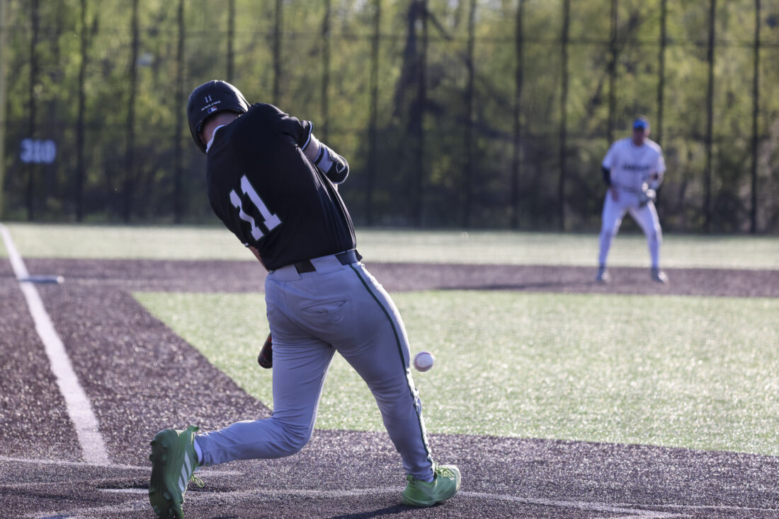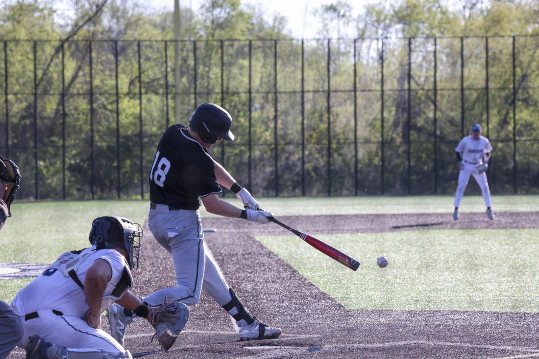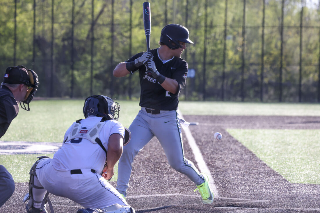 Free State junior Ryan Vigna looks to connect with a Mill Valley pitch during the Firebirds’ game on Thursday, April 16, 2026, at Mill Valley High School in Shawnee.