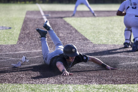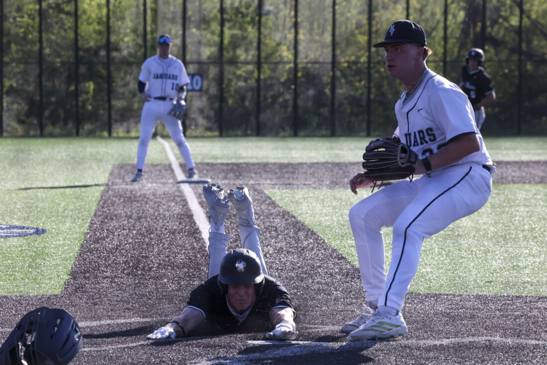 Free State junior Owen Lester slides safely into home during the Firebirds’ game against Mill Valley on Thursday, April 16, 2026, at Mill Valley High School in Shawnee.