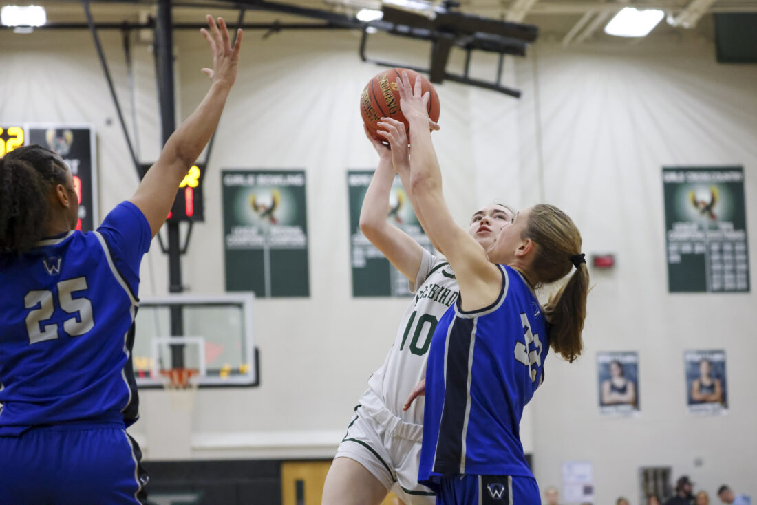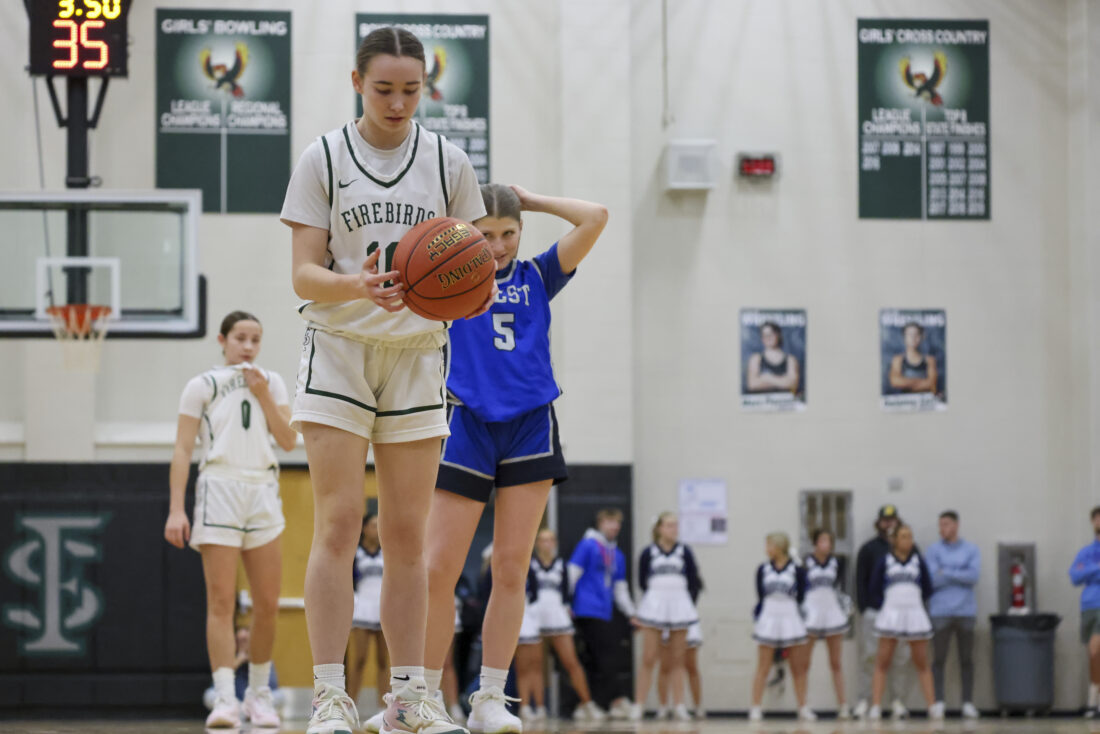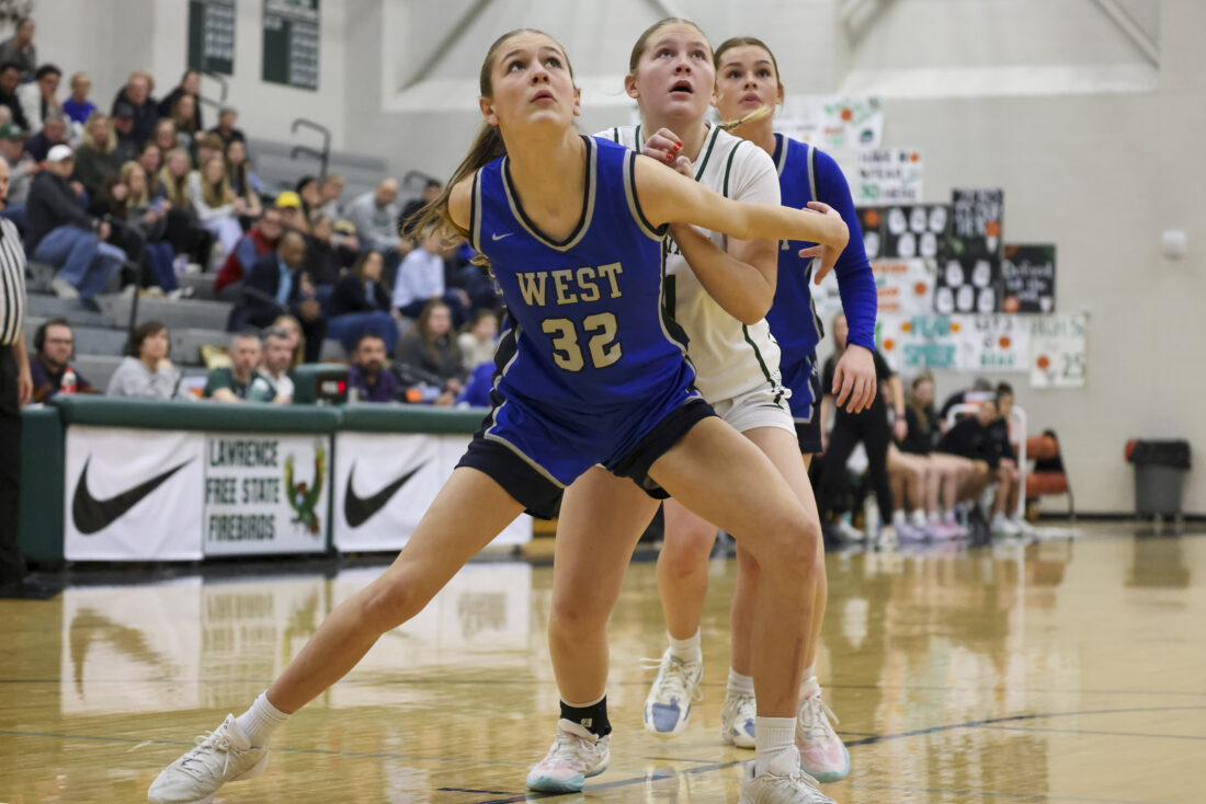 Free State senior Libby Easter fights for position during the Firebirds’ game against Olathe West on Friday, Feb. 6, 2026, at Free State High School in Lawrence.
