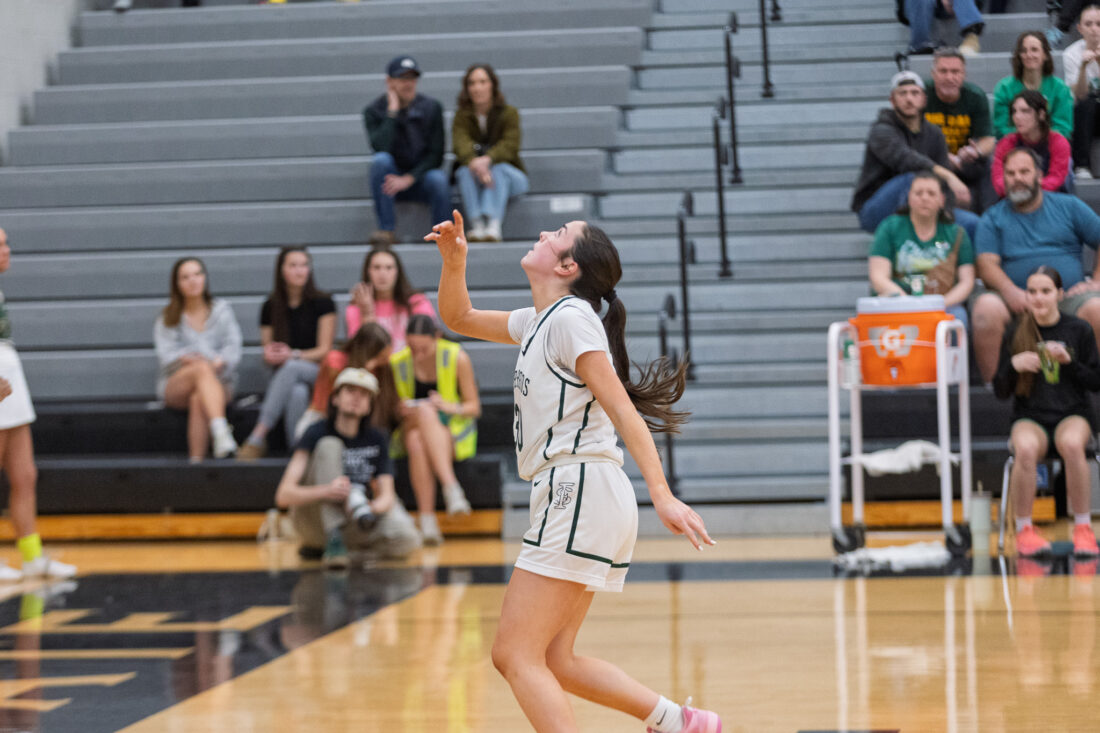 Free State senior guard Libby Easter watches her shot after shooting a 3-pointer while playing against Shawnee Mission South at Free State High on Friday, Feb. 13, 2026.