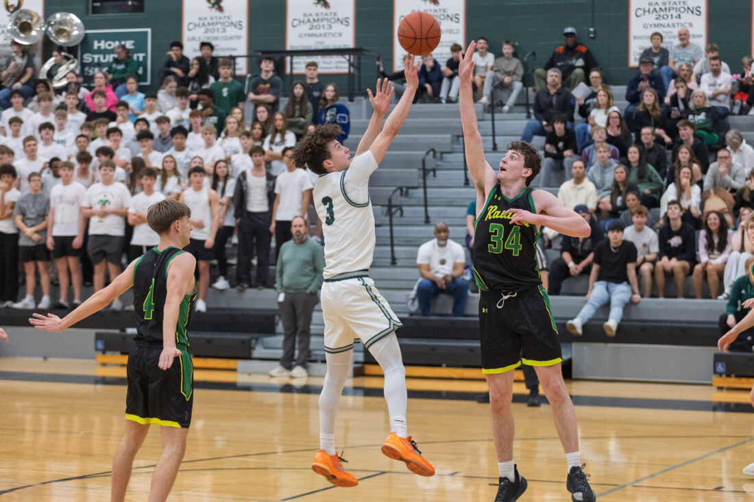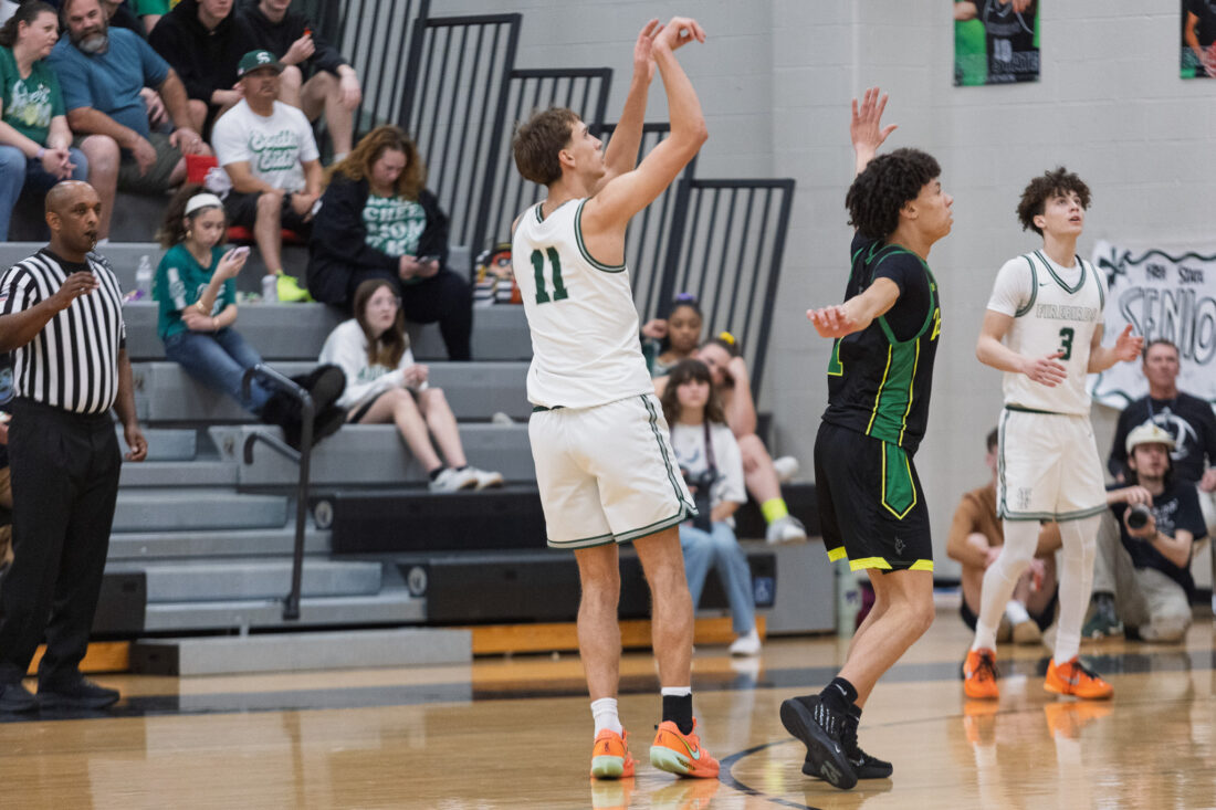 Free State senior Ethan Prescott shoots a 3-pointer while playing against Shawnee Mission South at Free State High on Friday, Feb. 13, 2026.
