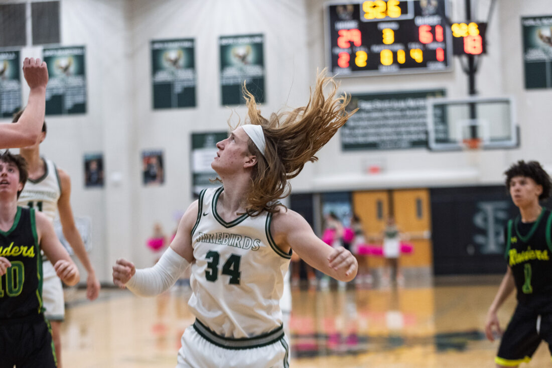 Free State sophomore Liam Collins watches his shot go in the basket while playing against Shawnee Mission South at Free State High on Friday, Feb. 13, 2026.