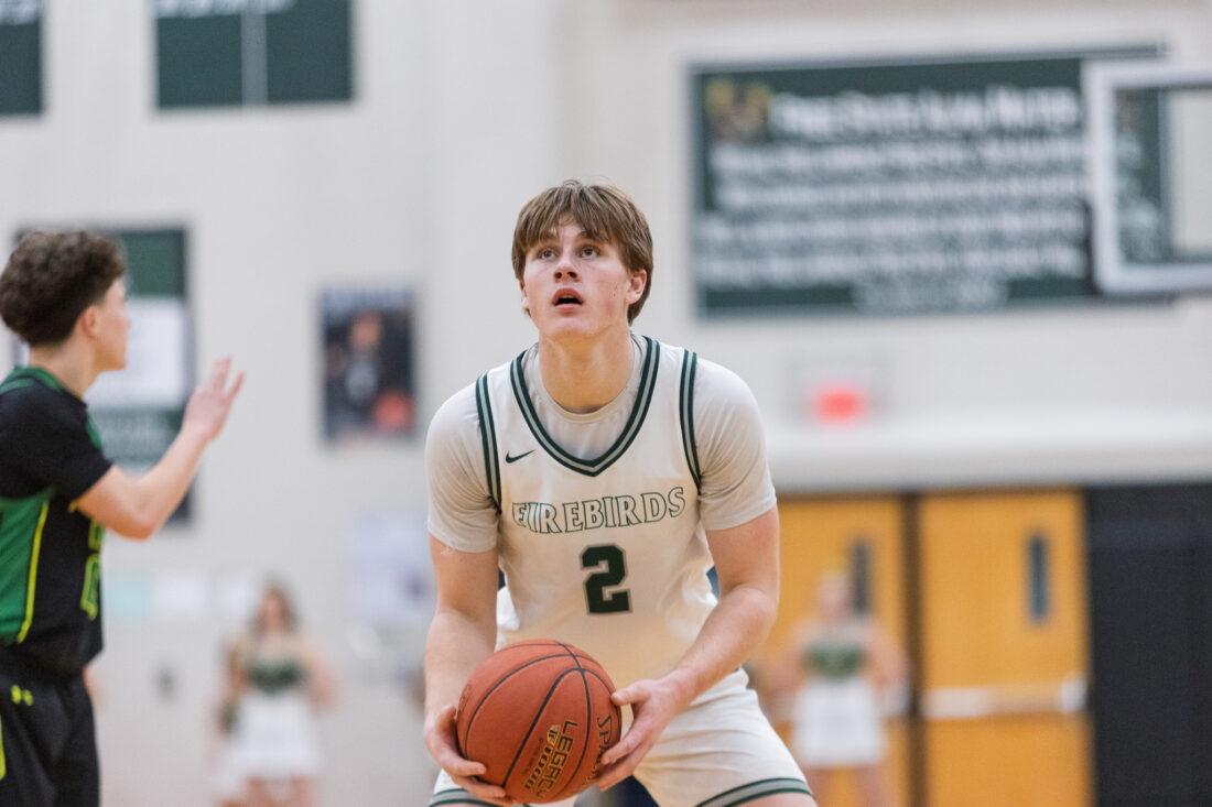 Free State senior Ethan Prescott prepares to shoot a free throw while playing against Shawnee Mission South at Free State High on Friday, Feb. 13, 2026.