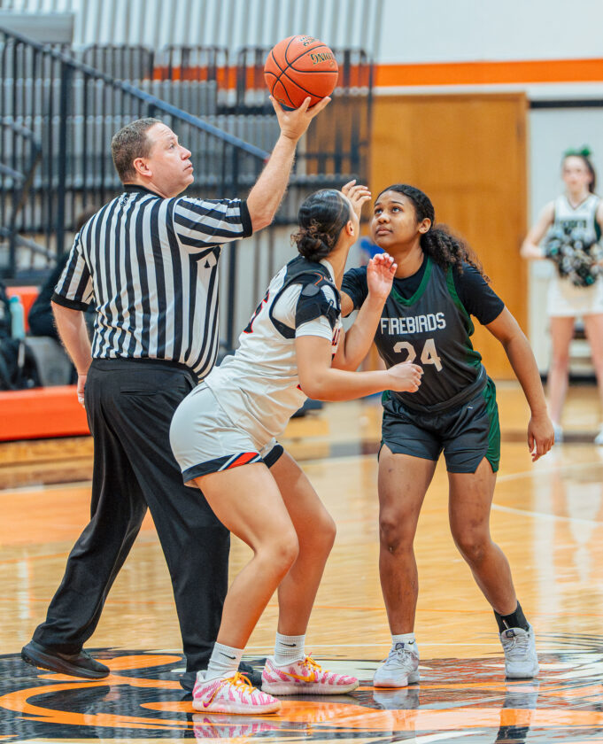 Free State forward Sarai Preston stands ready for the tipoff before the game against Shawnee Mission Northwest on Tuesday, Feb. 24, 2026, in Shawnee.