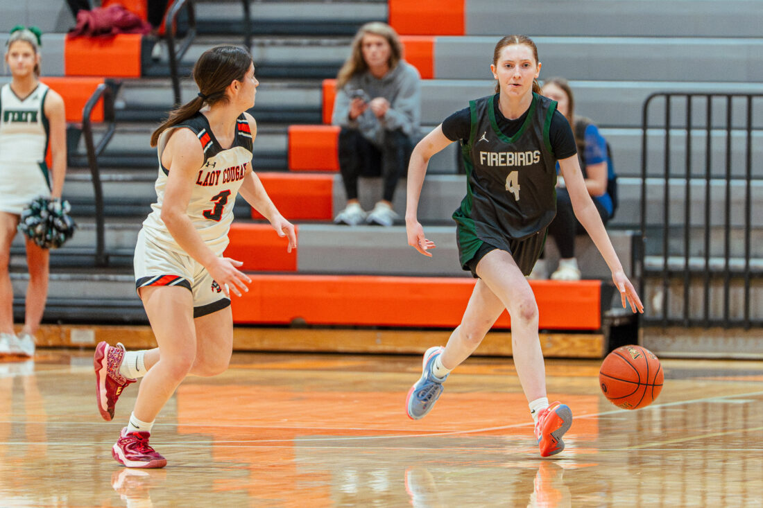 Free State guard Quinlynn Vail dribbles at the top of the key during the game against Shawnee Mission Northwest on Tuesday, Feb. 24, 2026, in Shawnee.