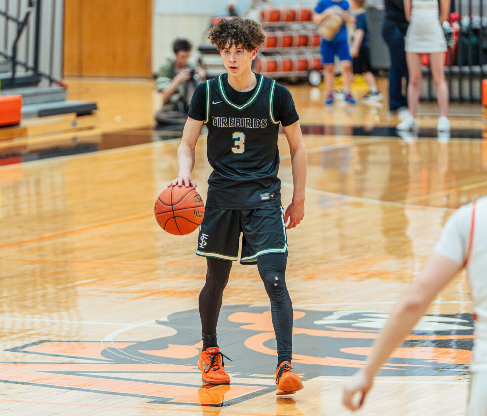 Free State guard Brendan Barrett surveys the court during the game against Shawnee Mission Northwest on Tuesday, Feb. 24, 2026, in Shawnee.