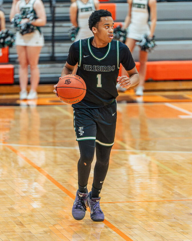 Free State guard Jayden Williams brings the ball up the court during the game against Shawnee Mission Northwest on Tuesday, Feb. 24, 2026, in Shawnee.