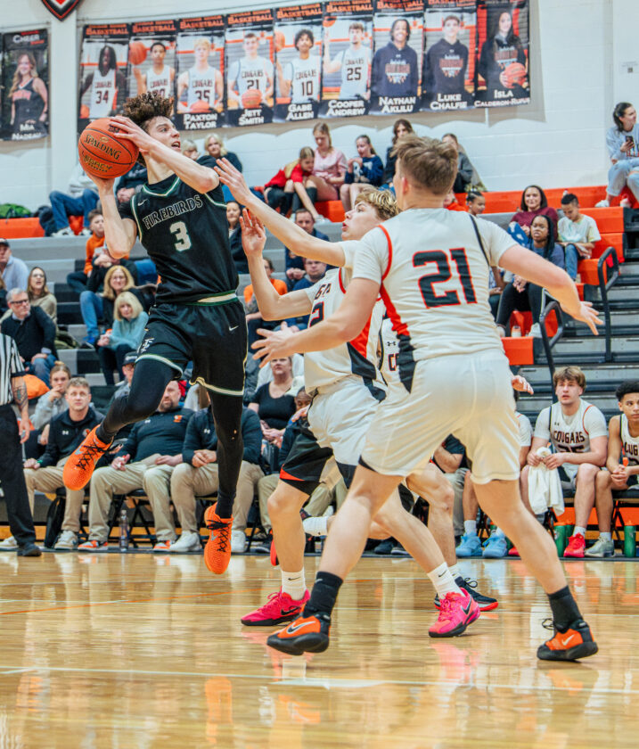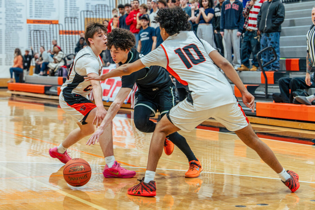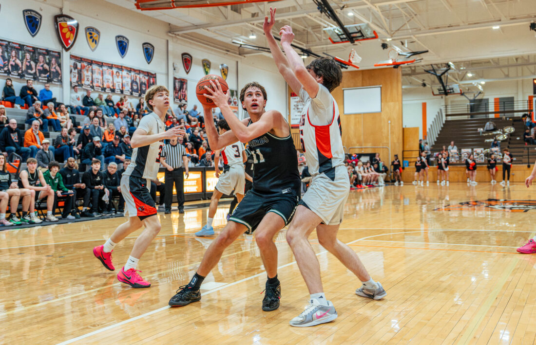 Free State guard Brendan Barrett splits the defense during the game against Shawnee Mission Northwest on Tuesday, Feb. 24, 2026, in Shawnee.