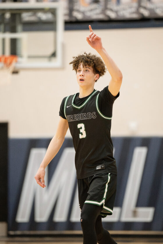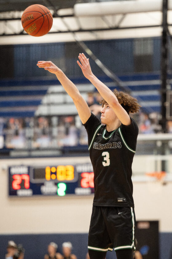 Free State sophomore Brenden Barrett hits a 3-pointer at Mill Valley on Friday, Feb. 27, 2026 in Shawnee.