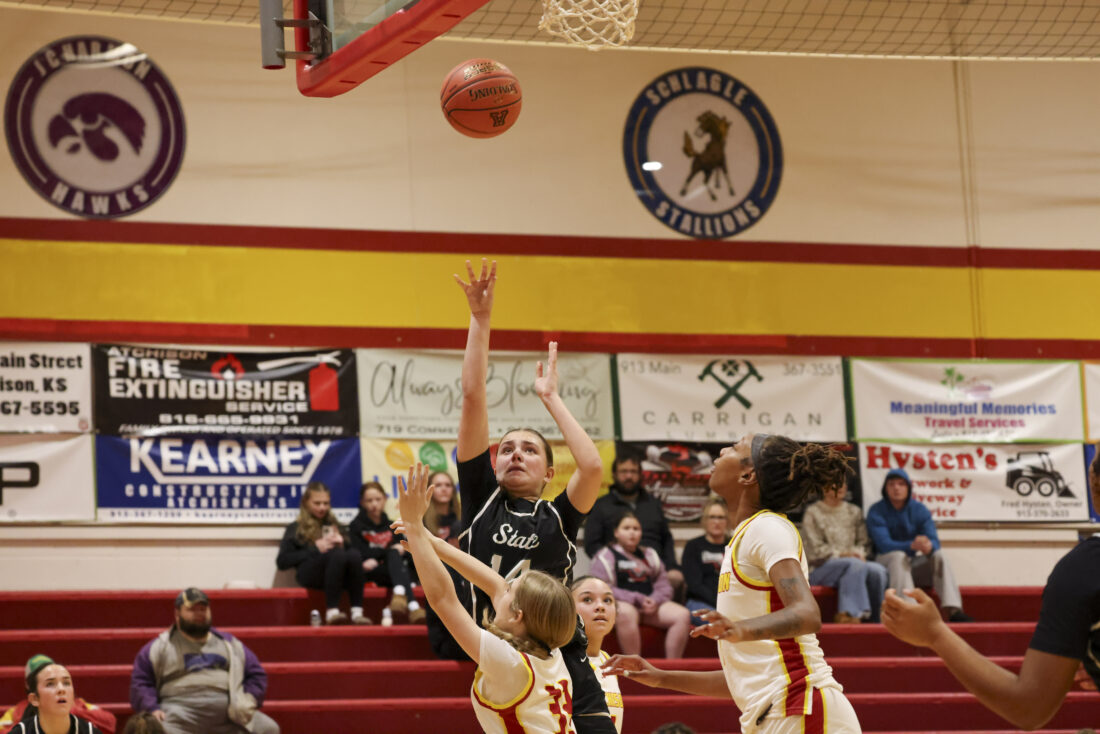Another key performance in the win was that of forward Sarai Preston, who Frantz says goes “unrecognized” for her ability to be impactful on the glass. Preston missed the Firebirds’ game against Shawnee Mission West on Dec. 19 with an ankle sprain, but returned in the win on Friday and kept Atchison’s 6-foot forward Kaiya Downing off the glass, allowing for the guards to grab rebounds and push the tempo.