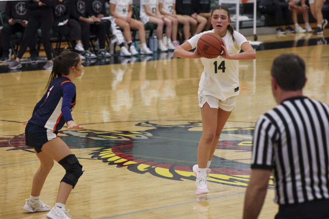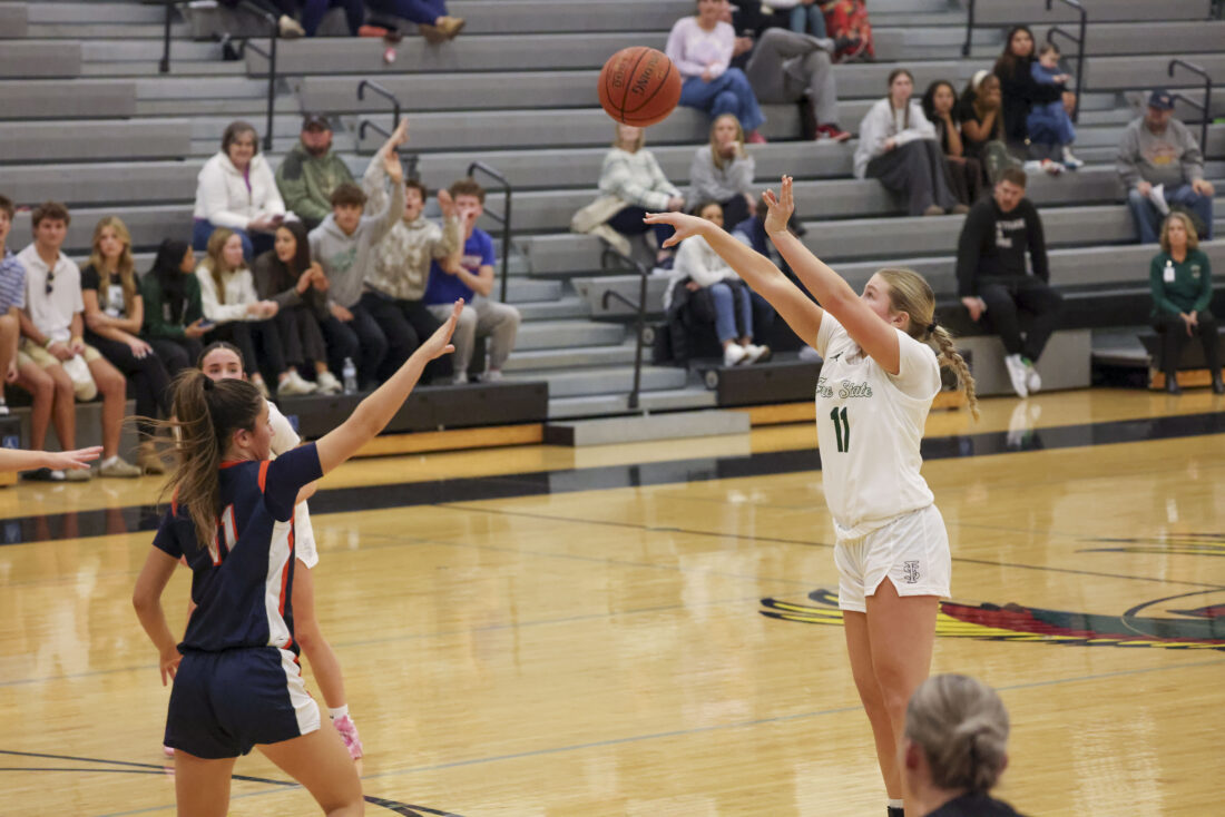 Back-to-back scores by freshman Quinlynn Vail, including a 3-pointer, cut the deficit to 9-7 before Olathe East scored the final three points of the quarter to take a 12-7 lead.