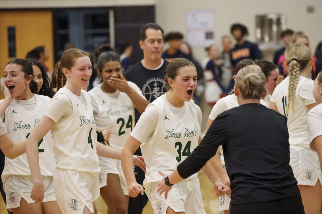 In a chaotic turn of events, the Free State girls team came back from a 12-point second-half deficit to take down Olathe East and improve to 4-6, marking its first win in Sunflower League play.