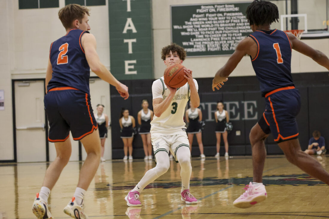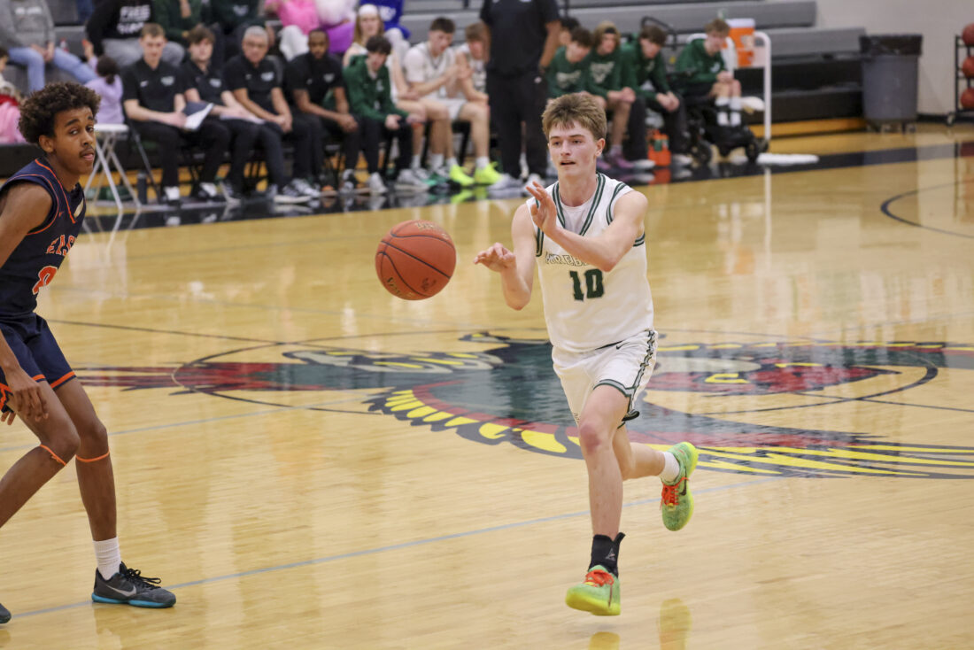 Sophomore Brayden DeBruin made Free State’s first 3-pointer of the game, but turnovers continued to pile up, allowing Olathe East to hold an 18-12 lead.