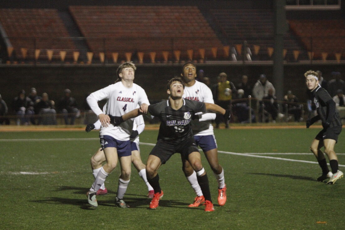 With eight minutes left, Classical School of Wichita scored a game-tying goal against Baldwin in the 4-1A boys soccer semifinal match at Baker University, making it a 1-1 game.