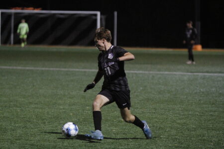 Baldwin’s assertive offensive start led to two close misses at the 10- and 15-minute marks, but neither were able to end in goals. But the Bulldogs kept pushing, and eventually, senior forward Cooper Carr brought the ball up the field along the right side before passing it inside to sophomore forward Taiven Hansen, who put the ball in the goal on a short shot.