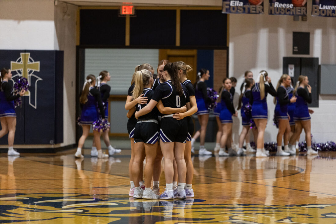 Baldwin’s basketball team huddles against Hayden on Friday, March 6, 2026, in Topeka.