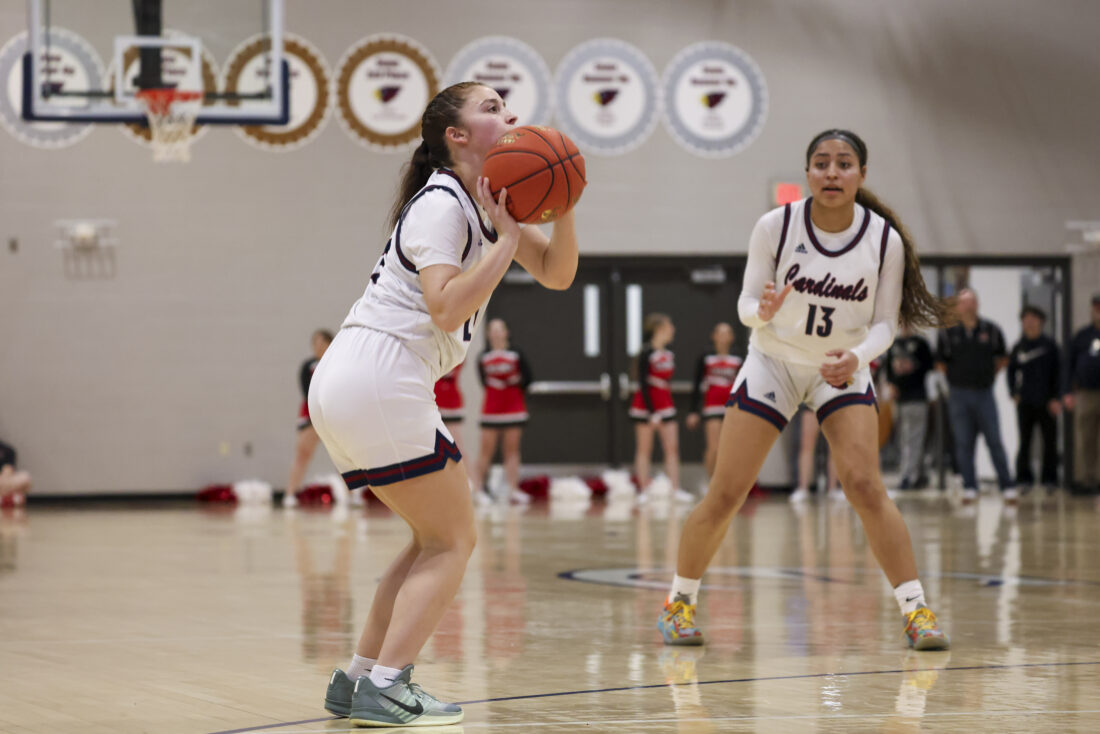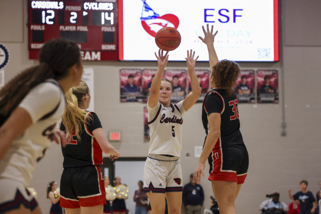 Eudora freshman Payton Lewis fires off a three during the Cardinals’ game against Ottawa on Friday, March 6, 2026, at Eudora High School in Eudora.