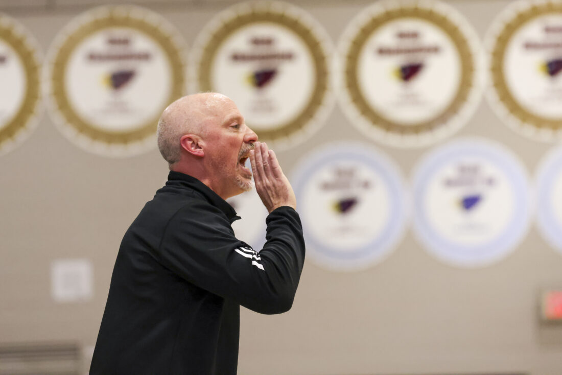 Eudora head coach Brandon Parker yells out to his team during the Cardinals’ game against Ottawa on Friday, March 6, 2026, at Eudora High School in Eudora.