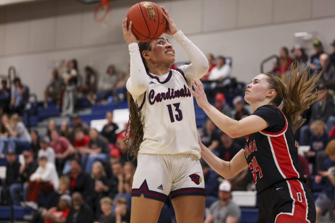 Eudora sophomore Avah Dye rises up for a shot during the Cardinals’ game against Ottawa on Friday, March 6, 2026, at Eudora High School in Eudora.