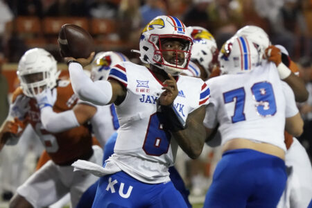 The sophomore QB from Lawndale, Calif., of course, had to come in unexpectedly on Nov. 6, when the Jayhawks lost both Bean and backup Kendrick to injuries in the first half against Kansas State. That emergency appearance marked Daniels’ third game this year, and when he took over at QB at Texas on Saturday, it put him at four — the maximum amount of appearances anyone redshirting can make.