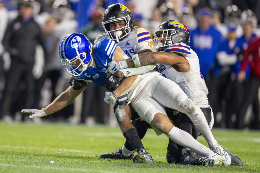 On fourth down, KU safety Marvin Grant said he knew from the way BYU was lining up that the Cougars planned to hit him with the same route they had used against him for a big play earlier in the fourth quarter. He ended up getting the credit for the decisive tackle on receiver Chase Roberts to end the potential game-winning drive for the previously unbeaten Cougars — who had escaped unfavorable late-game situations on multiple occasions this season.