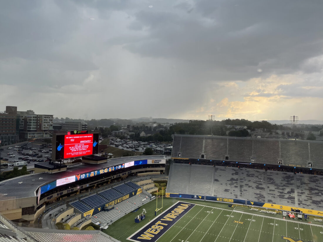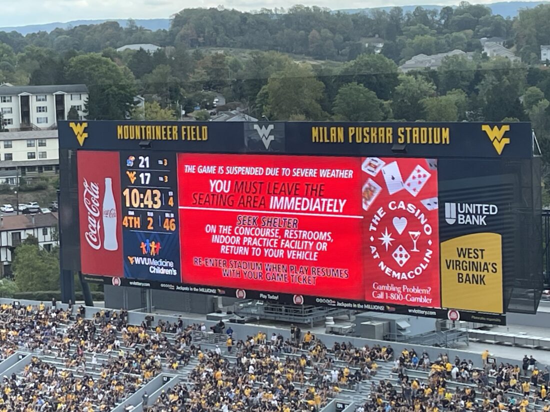 This time around, the delay was foretold by a “threat of severe weather” posted in the stadium about 25 minutes beforehand. And this time, the outcomes were reversed as WVU came out on top following the delay.