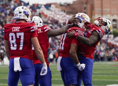 “The thing that I enjoy watching about both of them is that they’re not going to always go down on the first hit, and then they keep piles moving,” Kansas coach Lance Leipold said. “Leshon has really good patience and vision and then hits things. Daniel is becoming more and more confident and trusting even his speed around the corner at times to make plays happen.