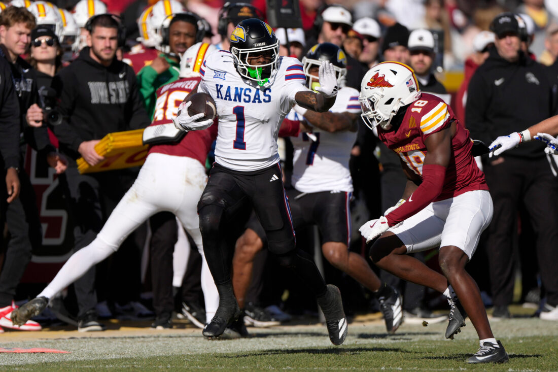 Kansas wide receiver Bryson Canty cuts upfield during the game against Iowa State on Saturday, Nov. 22, 2025, in Ames, Iowa.