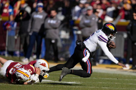 The Jayhawks’ next drive ended when Daniels came up short on a fourth-down scramble in ISU territory; the Cyclones also turned the ball over on downs on their own ensuing series after starting the game 3-for-3 on fourth down.