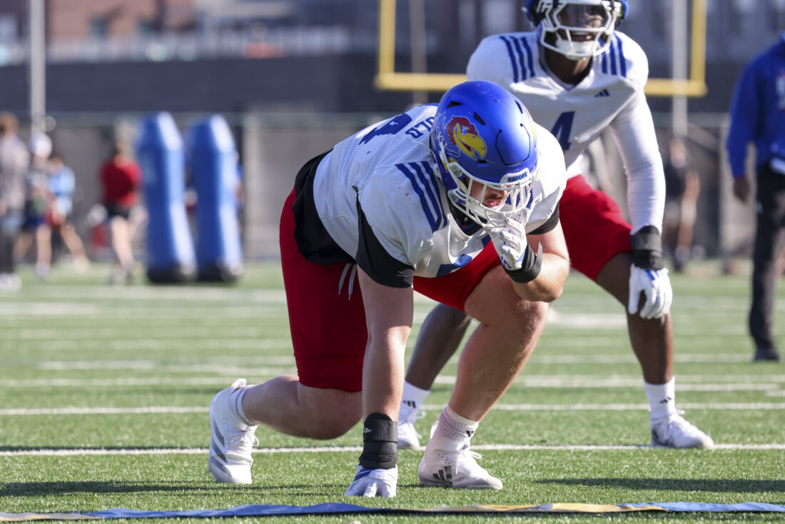Kansas defensive tackle Blake Herold participates in Kansas football’s spring practice on Thursday, March 26, 2026, in Lawrence.