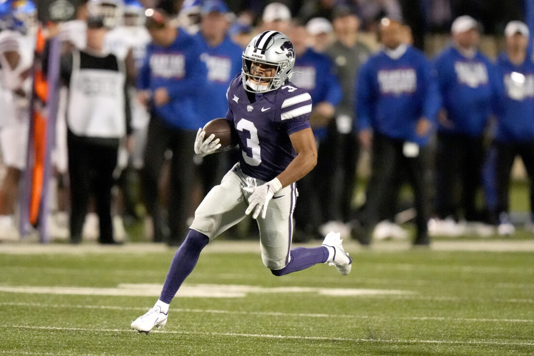 Kansas State running back Dylan Edwards runs the ball during the second half of an NCAA college football game against Kansas State, Saturday, Oct. 26, 2024, in Manhattan.