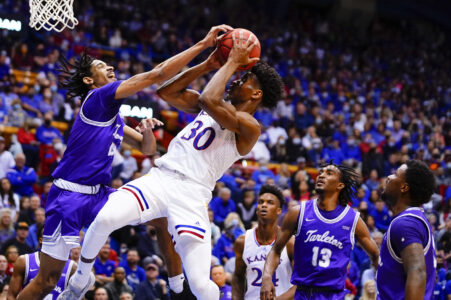 The Jayhawks shot 59% from the field, went 9-for-20 on 3-pointers and outscored the Texans, 40-34, in the paint. KU also controlled the glass, 41-25, with Braun and senior big man David McCormack grabbing 8 boards apiece.