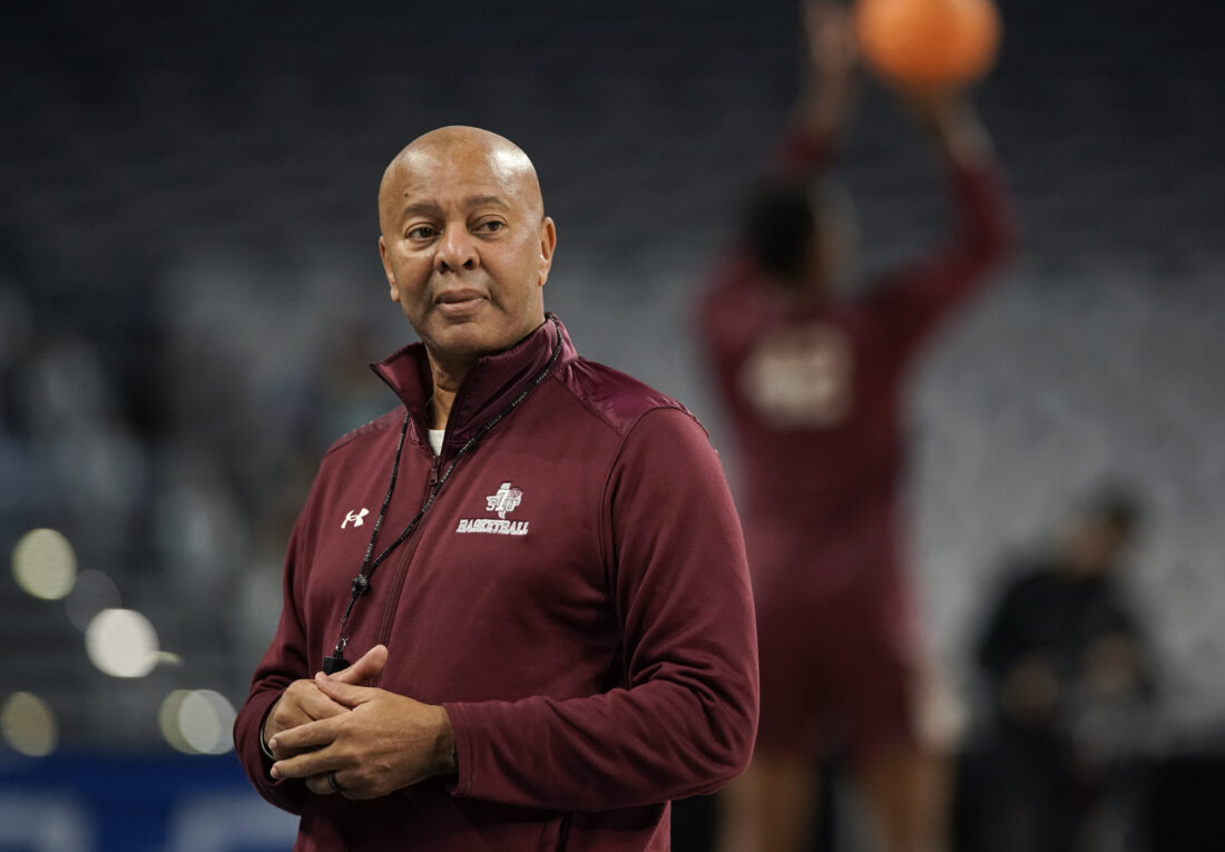 Texas Southern head coach Johnny Jones watches over practice on Wednesday, March 16, 2022 at Dickies Arena in Fort Worth, Texas.