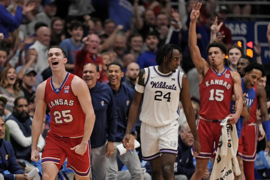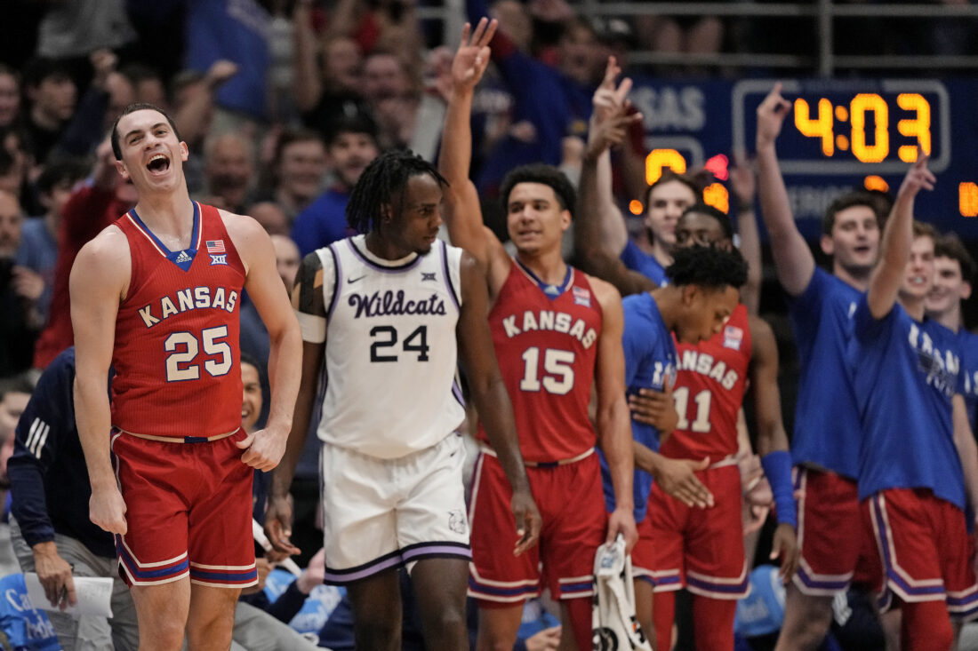 One thing Timberlake himself can count: three straight wins on senior nights. He is, after all, a sixth-year senior thanks to a redshirt year and a COVID-19 year, and said he had two senior nights already at Towson, before he got honored at Allen Fieldhouse and delivered a speech following KU’s 90-68 win over K-State, in which he got a ceremonial start.