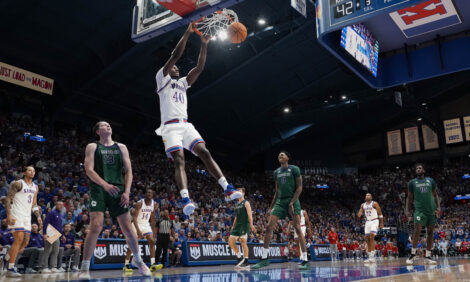 This time, the Congolese sophomore opened an efficient 9-for-9 before missing a couple quick shots with the outcome already decided and was a vastly more effective 5-for-6 at the charity stripe. He showed a significantly more developed post repertoire, attacked off the dribble and menaced the Phoenix’s shooters (he led KU with six rebounds and three blocks). In short, he was much the kind of player KU needs in its arsenal to complement guard Darryn Peterson this season.