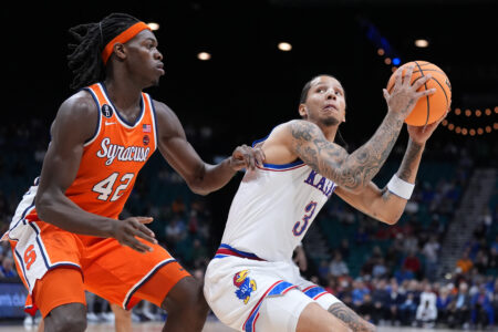 That didn’t do much to spark the Jayhawks’ offense, as a couple of attempts to reincorporate Bidunga backfired and Betsey hit another 3 to bring the Orange even closer.